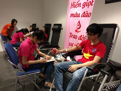 Các tình nguyện viên Hội Chữ thập đỏ tham gia hiến máu nhân đạo.