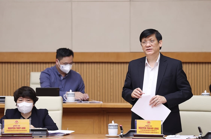 | Bộ trưởng Bộ Y tế báo cáo công tác phòng, chống dịch Covid-19 tại cuộc họp . Ảnh: TTXVN |