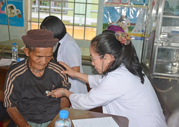 Bác sĩ tình nguyện TP Hồ Chí Minh giúp Bệnh xá xã Ia Mơ Nông (huyện Chư Păh, tỉnh Gia Lai) khám bệnh. |