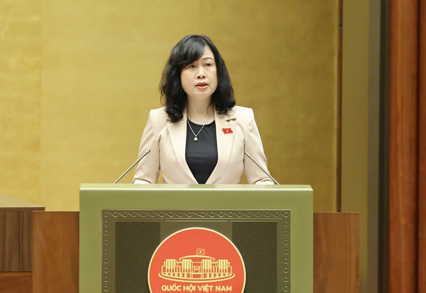 Bộ trưởng Bộ Y tế Đào Hồng Lan trình bày tờ trình về chương trình mục tiêu quốc gia về chăm sóc sức khỏe, dân số và phát triển. Ảnh: TRỌNG HẢI