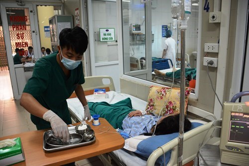 Bác sĩ đang chăm sóc bệnh nhân SXH tại khoa cấp cứu, Bệnh viện Nhiệt đới Trung ương.