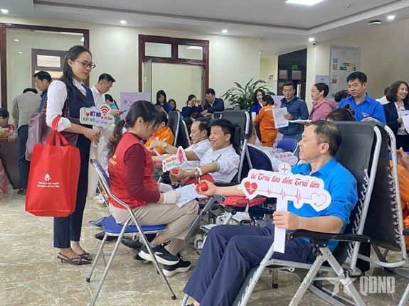 Cán bộ, nhân viên đăng ký tham gia hiến máu. |