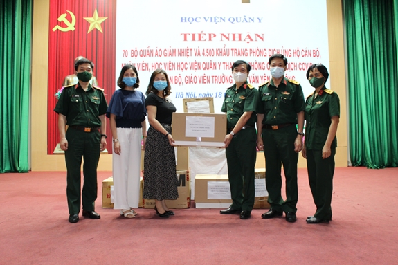 Cũng trong khuôn khổ lễ trao tặng, tập thể cán bộ; giáo viên; nhân viên Trường Trung học cơ sở Văn Yên (Hà Đông) đã trao cho Học viện Quân y 70 bộ quần áo giảm nhiệt và 4.500 khẩu trang.