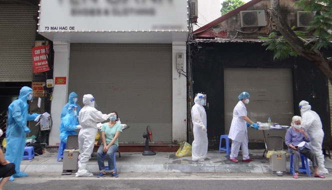 | Lấy mẫu xét nghiệm Covid-19 cho người dân ở khu vực có nguy cơ cao. Ảnh: hanoimoi.com.vn |