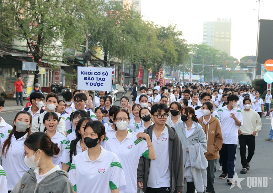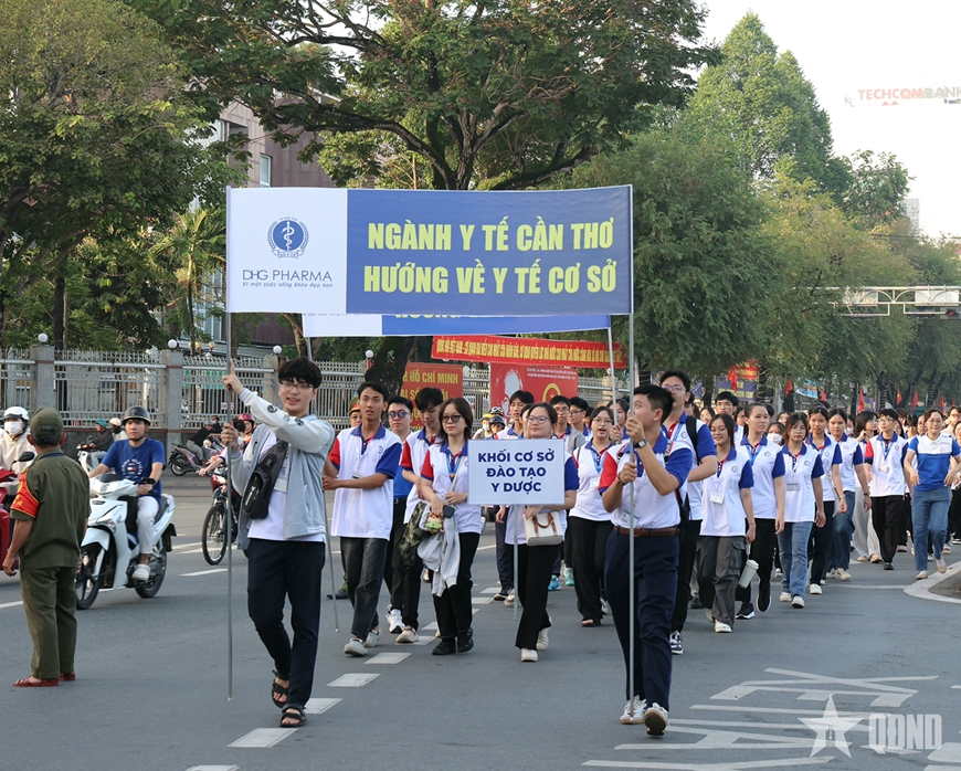 | Khối cơ sở đào tạo y dược các trường đại học, cao đẳng trên địa bàn TP Cần Thơ tham gia hưởng ứng chương trình đi bộ. |