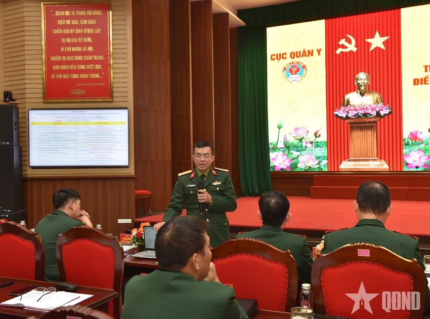 | Thiếu tướng Trần Công Trường, Phó cục trưởng Cục Quân y phát biểu khai mạc hội nghị. |