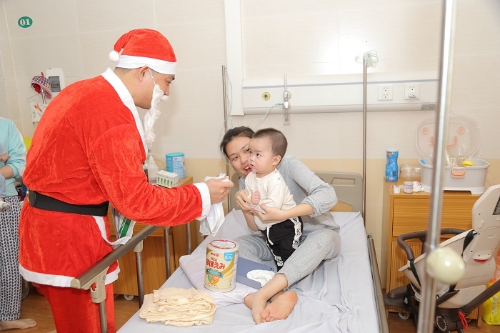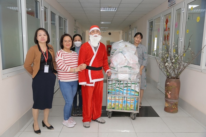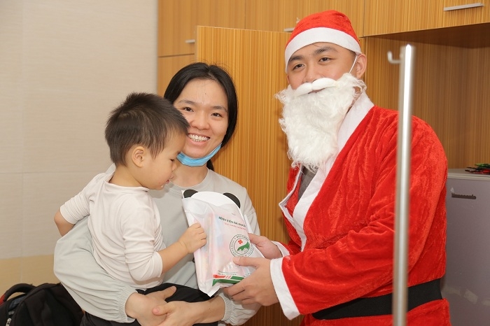 Để lan tỏa hơi ấm yêu thương, xua tan đi giá lạnh và đưa không khí Giáng sinh ấm áp tới từng bệnh nhi, được sự chỉ đạo của Ban Giám đốc bệnh viện, trong ngày 20-12, cán bộ, nhân viên phòng Công tác xã hội đã hóa trang thành ông già Noel để trao tặng 200 phần quà dễ thương tới từng bệnh nhi đang điều trị tại Bệnh viện và chúc các bé mau khỏe để quay trở lại cuộc sống thường nhật, chào đón một năm mới nhiều sức khỏe hạnh phúc bên gia đình.