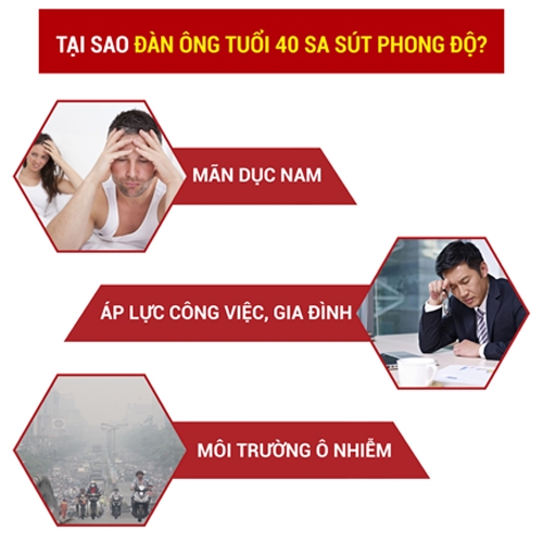 40 tuổi là giai đoạn bước ngoặt của đàn ông. Bởi đa số họ đều đã lập gia đình, con cái dần khôn lớn, bố mẹ tuổi cao, sự nghiệp ổn định… Điều đó cũng có nghĩa trách nhiệm trụ cột gia đình, ổn định kinh tế, thăng tiến công việc… lại càng khiến phái mạnh áp lực và trăn trở hơn nữa. Cứ thế, họ làm việc cật lực hơn, nỗ lực hơn và stress cũng nhiều hơn. Tình trạng này kéo dài khiến sức khỏe và sinh lý nam giới giảm sút nghiêm trọng, chăn gối vợ chồng “nguội lạnh”, thậm chí là nguồn cơn của những cuộc mâu thuẫn, bất hòa trong gia đình.