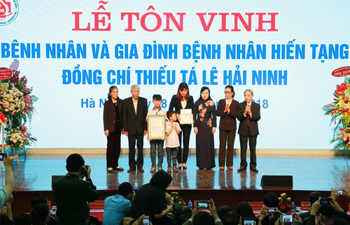 *Chiều cùng ngày, Bệnh viện Trung ương Quân đội 108 cũng đã tổ chức tôn vinh gia đình Thiếu tá Quân đội Lê Hải Ninh - người bị chết não đã hiến tim, phổi, 2 thận, 2 giác mạc để cứu sống 6 bệnh nhân khác.