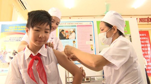 Tiêm chủng sởi tại Trường THCS Lê Quý Đôn, Hà Nội. Ảnh: Thu Hương
