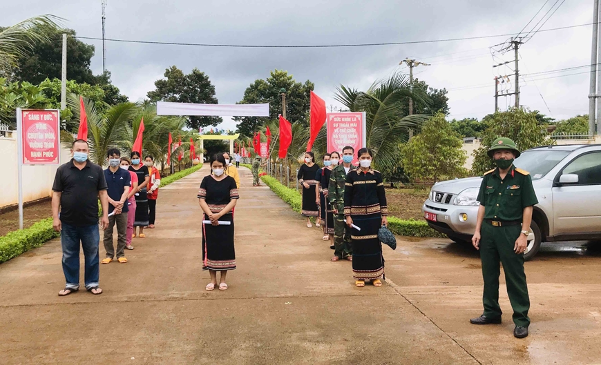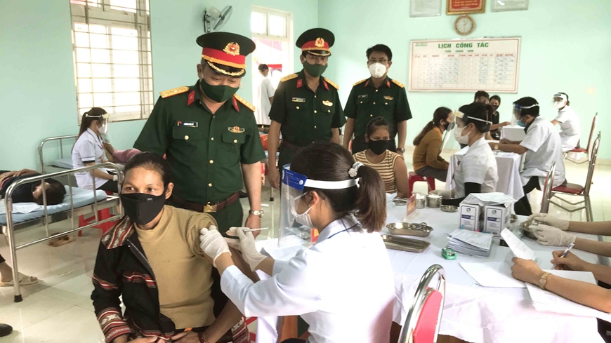 | Lãnh đạo Binh đoàn 15 đến kiểm tra công tác tiêm ngừa Covid-19 ở Công ty 715. |