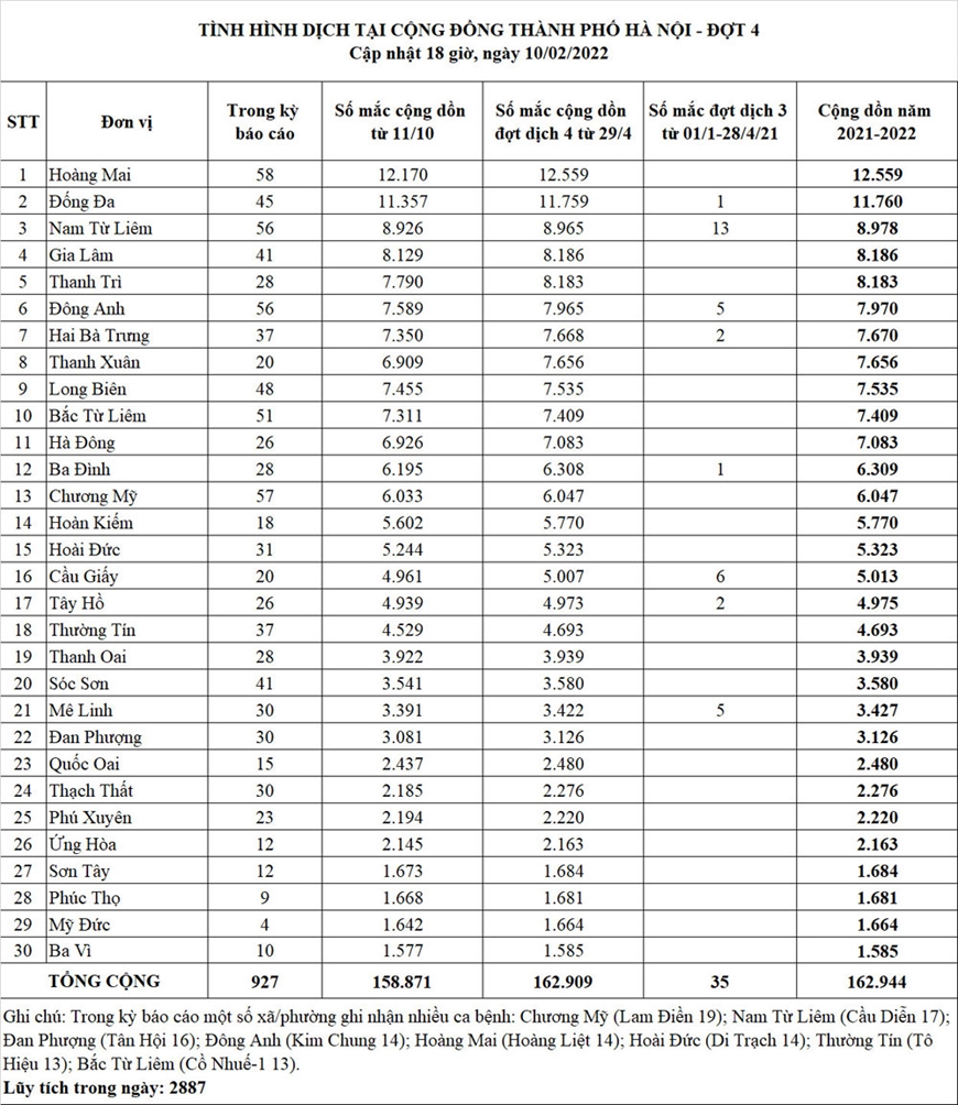 Cộng dồn số mắc Covid tại Hà Nội trong đợt dịch 4 (từ ngày 29-4-2021): 162.909 ca.