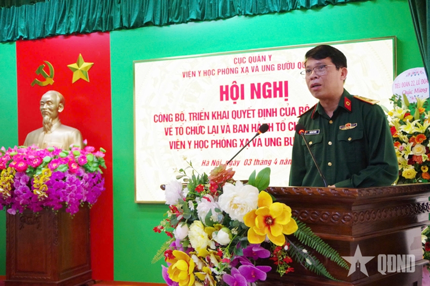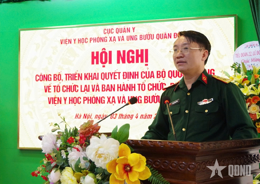Tại hội nghị, các cơ quan chức năng của Cục Quân y đã công bố Quyết định số 808/QĐ-BQP ngày 12-2-2026 của Bộ Quốc phòng và Quyết định số 506/QĐ-TM ngày 13-2-2026 của Tổng Tham mưu trưởng về việc tổ chức lại và ban hành Biểu tổ chức, biên chế Viện Y học phóng xạ và Ung bướu Quân đội (thời bình) thuộc Cục Quân y, Tổng cục Hậu cần - Kỹ thuật.