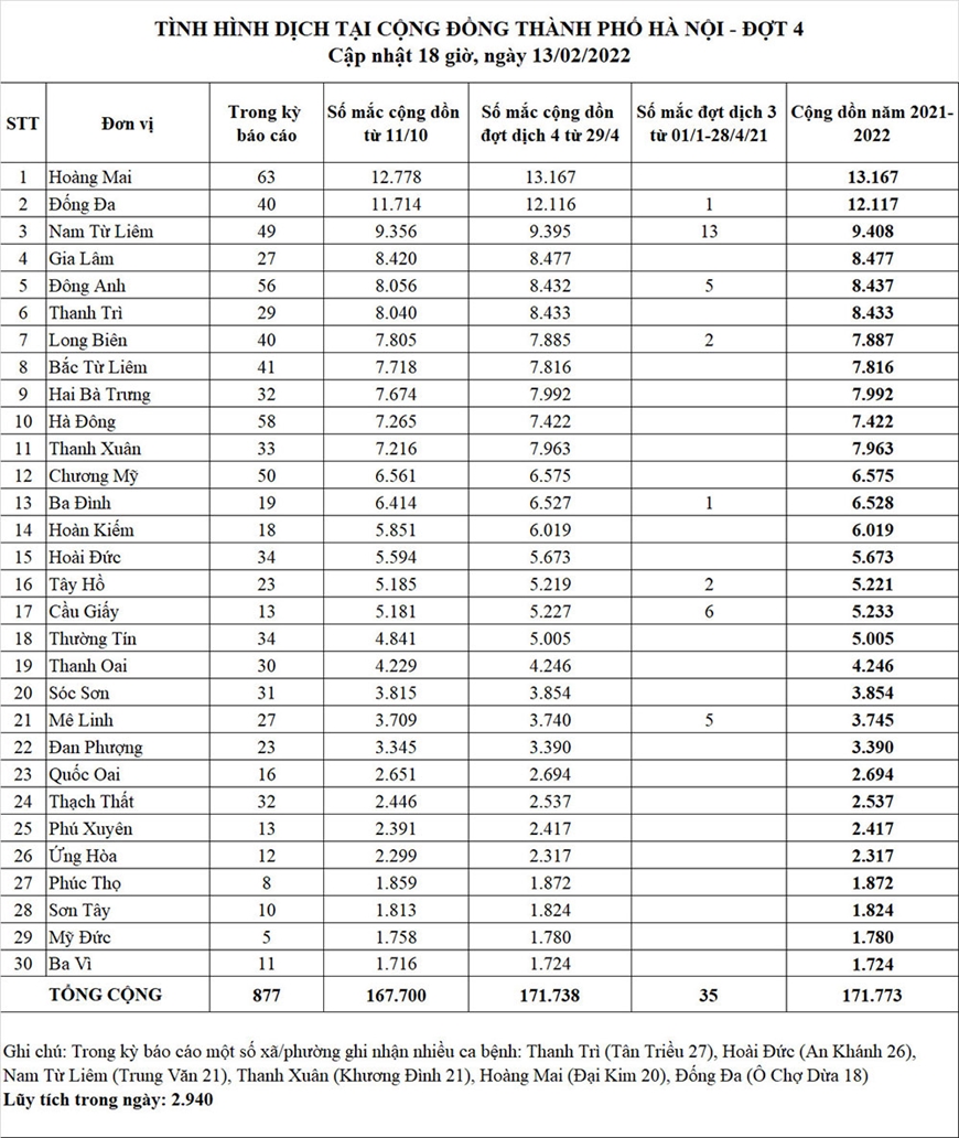 Cộng dồn số mắc Covid tại Hà Nội trong đợt dịch 4 (từ ngày 29-4-2021): 171.738 ca.