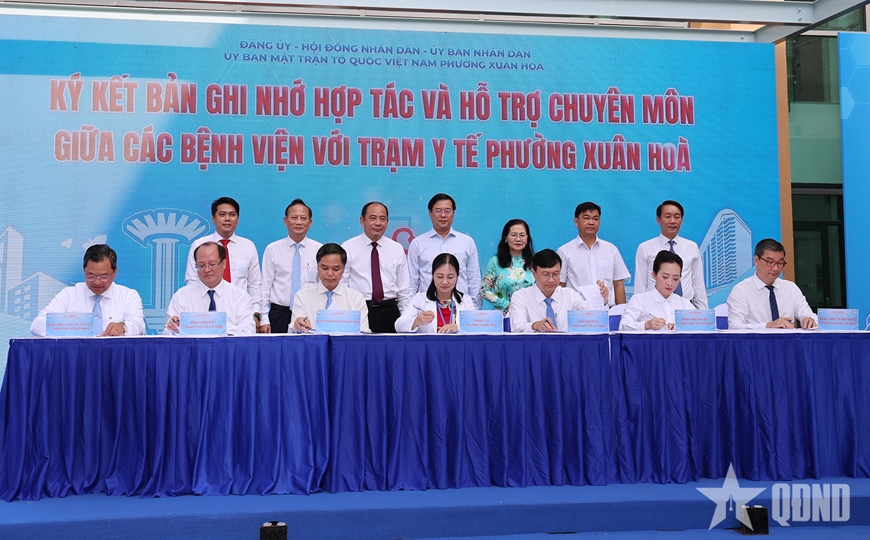 | Trạm Y tế phường Xuân Hòa ký kết hợp tác chuyên môn với các cơ sở y tế tuyến trên. |