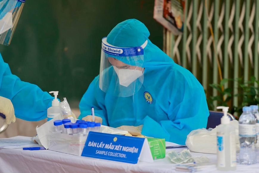 Bàn lấy mẫu xét nghiệm Covid-19 cộng đồng. Ảnh: Vũ Phượng
