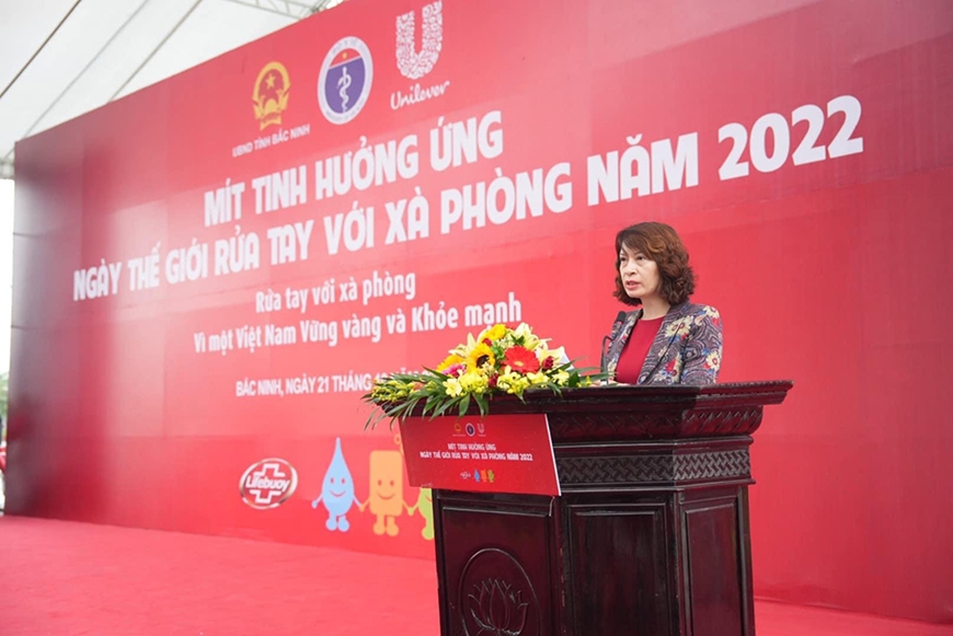 Phát biểu tại buổi mít tinh, bà Nguyễn Thị Liên Hương, Thứ trưởng Bộ Y tế kêu gọi các bộ ngành, các tổ chức chính trị xã hội, các ban ngành, đoàn thể, chính quyền các cấp và cơ quan thông tấn báo chí tăng cường phối hợp với ngành y tế đẩy mạnh thông tin, tuyên truyền nhằm nâng cao nhận thức của người dân về tầm quan trọng, lợi ích và hiệu quả của việc rửa tay với xà phòng trong phòng, chống dịch bệnh để từ đó duy trì việc rửa tay với xà phòng dần dần trở thành công việc thường xuyên, thói quen hàng ngày.